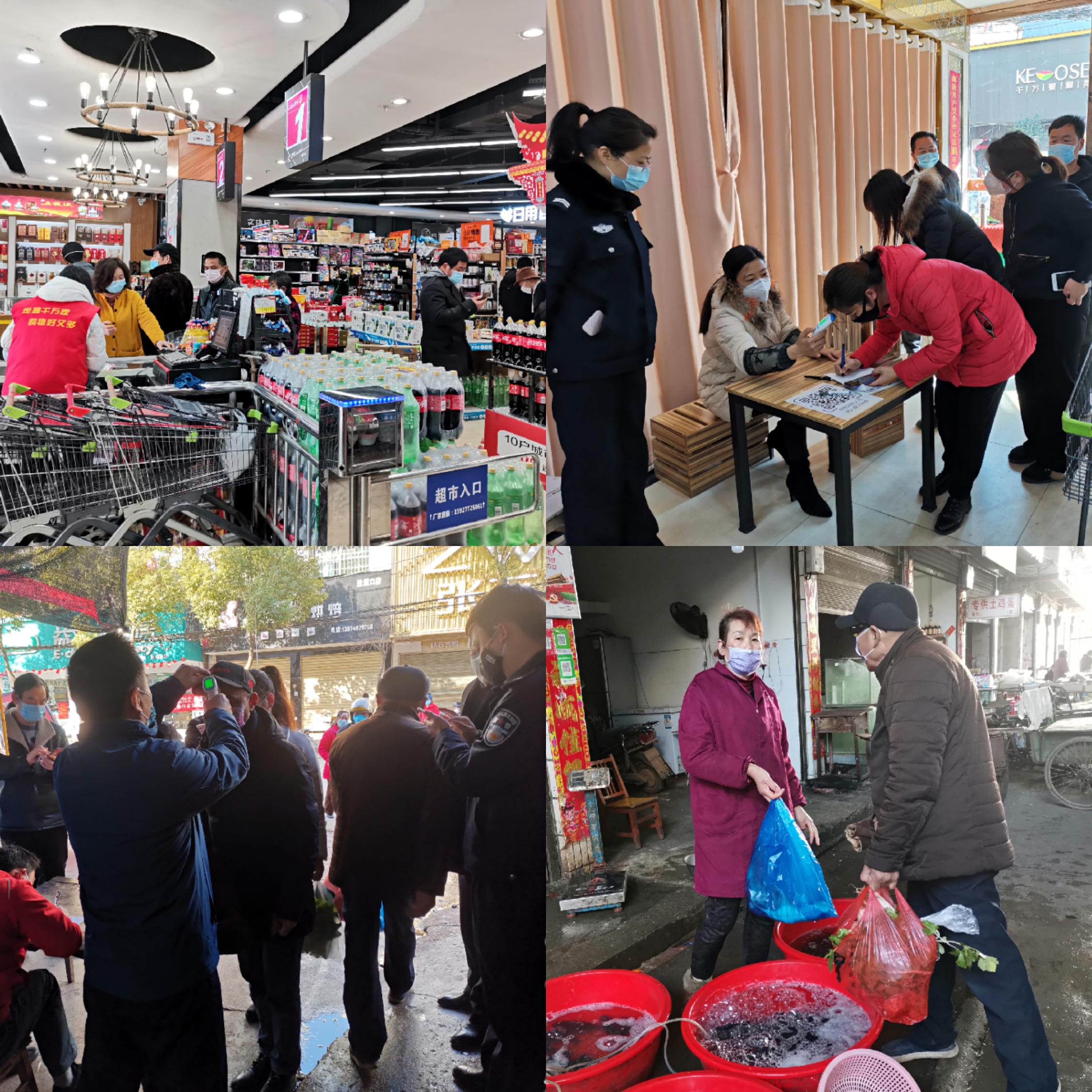 新冠肺炎疫情防控不能放松,市场供应、群众生活必需品也要有保障。华容县注滋口镇突发公共卫生事件应急指挥所以防疫防控工作为底线,严格落实防控要求,逐步恢复市场,保证群众基本的生活物资供应。镇里建立以公安、交警、机关工作人员的三层联合监督机制,在超市、农贸市场等大型购物场所进行联合执法。公安负责劝返不戴口罩的消费者,维护入口登记秩序;交警负责车辆疏导,避免交通堵塞;机关干部监督指导工作人员进行有序的信息登记、体温监测。该镇还敦促各门店安排专人负责防疫工作,开展每日一消毒,设置入场佩戴口罩的醒目标识,对未佩戴口罩人员进行劝阻;同时,所有开门经营的单位设置门外门,为每一位顾客量体温、登记身份信息,并扫描二维码进行个人信息的记录。