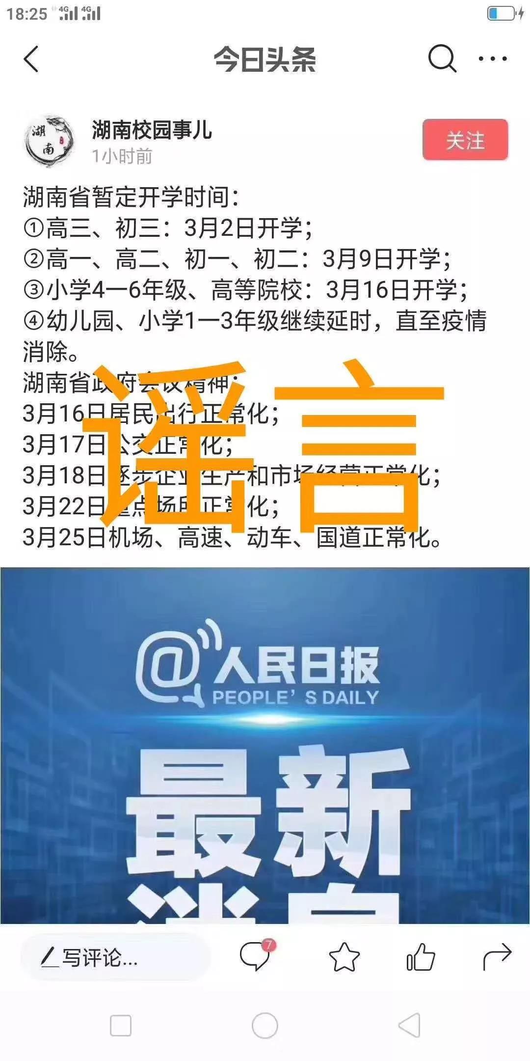 2月20日,记者向湖南省教育厅核实,该内容系谣言。目前,湖南省相关部门并未发布该信息。请各位家长切勿听信谣言,请以官方渠道公布的开学时间为准。
