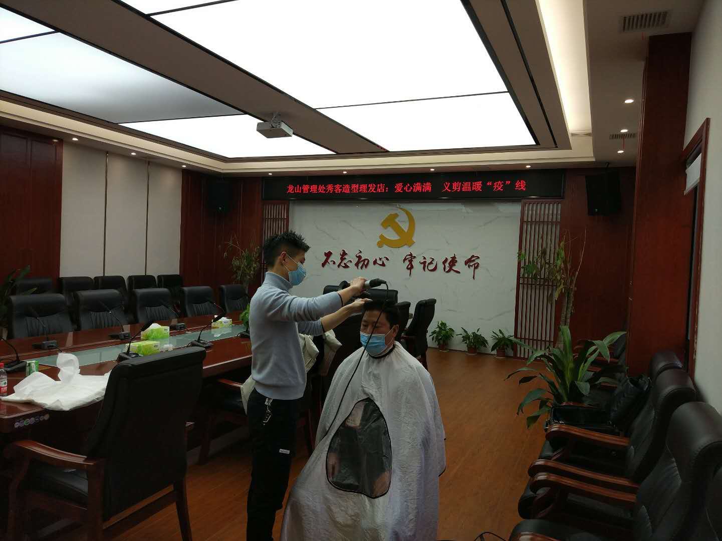 岳阳广电新媒体中心讯(记者/余佳敏)2月20日,吴刚把他的秀客造型工作室搬到了南湖新区龙山管理处机关会议室,他的到来犹如一场及时雨,为长时间坚守“疫”线的工作人员送去了温情又实在的服务。