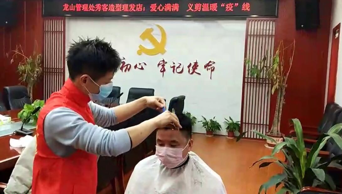 这次义剪活动从早上八点开始,共服务防疫一线工作人员23人。据了解,吴刚的造型工作室已经营业16年了,平时主要为龙山居民理发服务。吴刚表示,为了大家的生命安全和身体健康,龙山管理处机关还有社区的工作人员一直在防疫一线奋战,作为理发师,自己愿意贡献一份力量。疫情防控期间,只要有需要,随叫随到,分文不取。