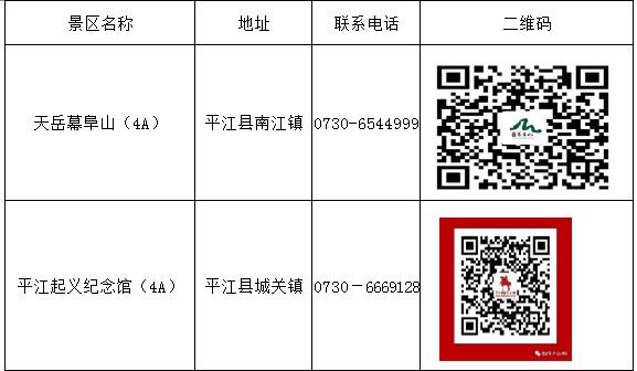 现役军人军属免费游平江景区景点名单