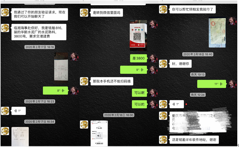 为便利航运公司和船员顺利复工,岳阳临湘海事政务窗口建立了港建费申报微信群,提供港口建设费征稽网上办理业务。船舶办理港建费业务时,由船方提供舱单、运单照片,政务中心工作人员核对后进行舱单的录入、稽核,由缴费义务人远程微信扫码支付或先行登记缓缴。虽然工作人员的流程变得更繁琐,但是为船方提供了便利和安全。