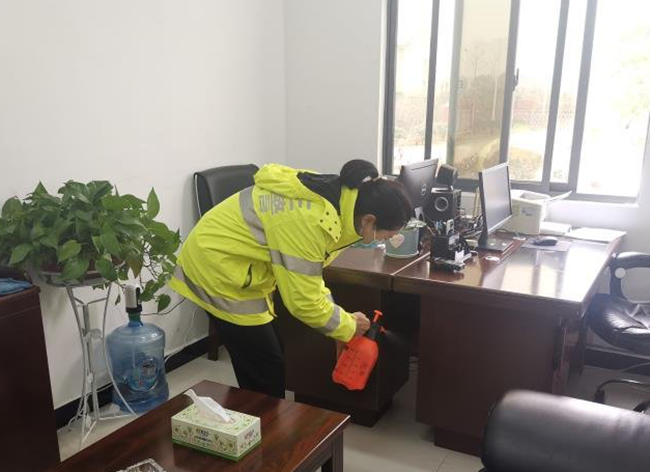 图:熊蕴涵忙于内务消毒工作