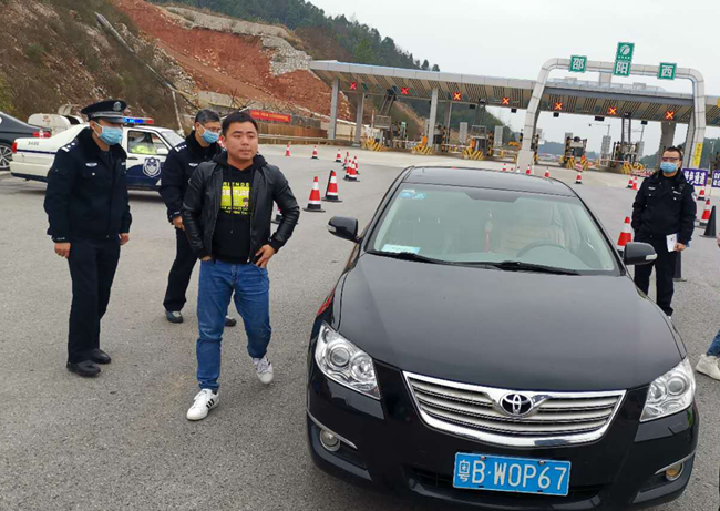 图:曾伟(右一)在邵阳西高速公路进口处检查车辆