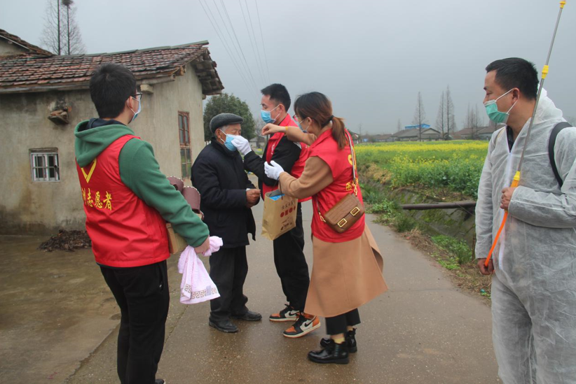 值得一提的是,在返回途中,志愿者们遇到了一位老爷爷,他和志愿者们边说边比划,志愿者们虽没听太懂,但觉得爷爷定是需要帮助,便扶爷爷回了家。刚到家门口,奶奶便立即上来扶住爷爷。原来,奶奶每隔几天要出门买一次菜,但是家里没有口罩,爷爷特别不放心。志愿者了解后赶紧从包里找出仅剩的十个口罩,送给了爷爷,并耐心的告诉他佩戴口罩的方法,同时叮嘱,疫情形势依然严峻,近段天气不好,能不出门就不要出门。只是几个口罩,爷爷奶奶却不停道谢,原来,善意,是一个口罩送去的安全感。