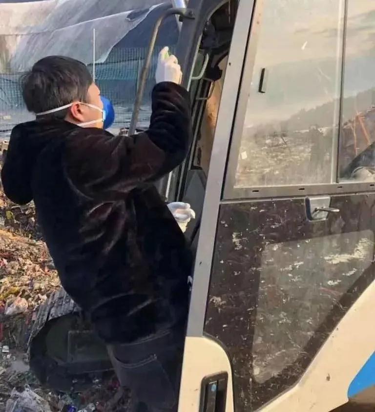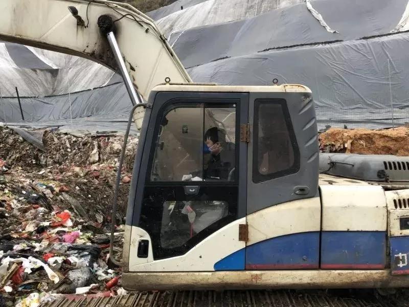 9号车进入了垃圾填埋场库区,彭湘军主动引导司机倾倒垃圾后,他马上给垃圾和运输车辆消毒,然后登上挖机进行垃圾填埋,填埋后又取来消毒设备对垃圾、填埋设备进行喷淋消毒处理,避免二次感染发生。疫情防控期间,彭湘军每天就是这样默默的坚守着疫情防控垃圾处理的“最后一道关口”。向这些逆行者、勇敢者、战斗者致敬!