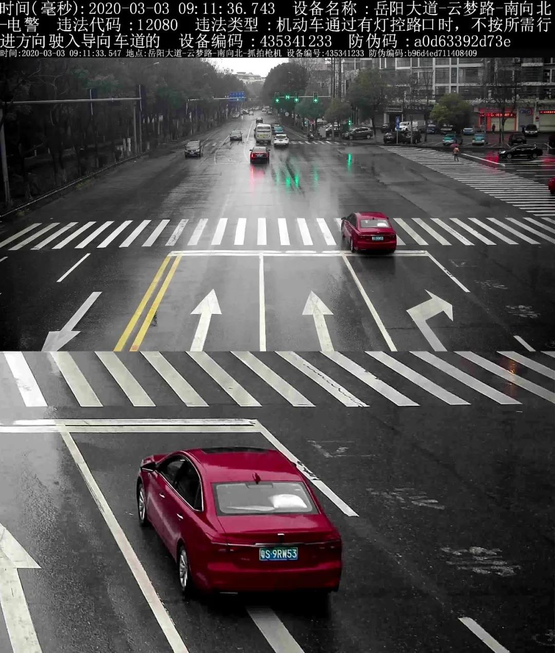 违法行为:不按导向车道行驶(左转弯车道直行)