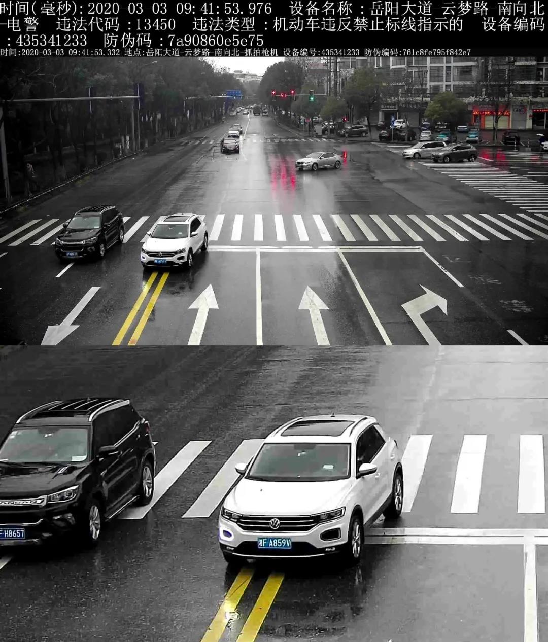 违法行为:机动车违反禁止标线(压双黄线)