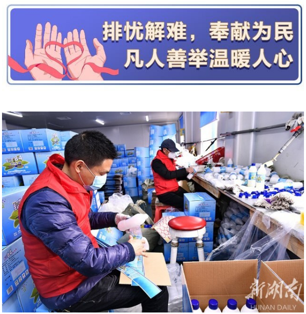 青年公益组织、长沙市群英会牵头组织80多家爱心团队、2000多名志愿者,向医务人员、老人、社区工作人员、困境群体等免费派发医用口罩超过12万只,捐赠其它防疫用品及米油蔬菜水果等物资超过300万元;