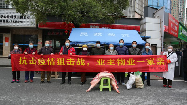 为了表达业主对防疫一线人员坚守战疫岗位的奉献,岳阳长炼花园小区业主委员会组织优秀业主、志愿者代表开展慰问活动,购买猪肉、蔬菜等食品慰问小区防疫一线人员,表达敬意!