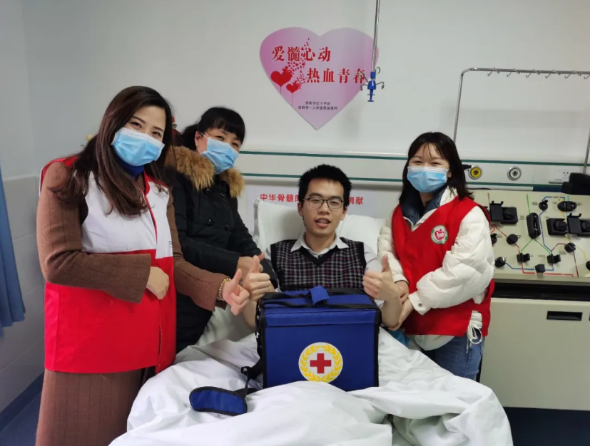 “90后”黄文轩是放射科一名优秀的医师,2015年第一次参与无偿献血,同时签订了一份同意书,成为一名造血干细胞捐献志愿者。2019年9月黄文轩接到了红十字会工作人员的电话通知,说他与一位白血病患者的造血干细胞初配相符,询问他是否愿意捐献。接到电话的他,毫不犹豫地回复:“我愿意捐献!”