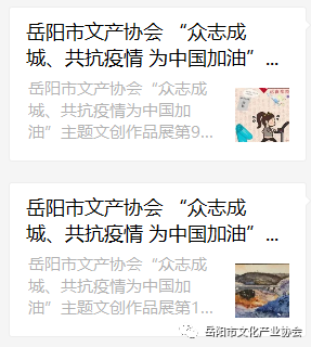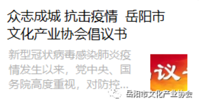 《众志成城抗击疫情——岳阳市文化产业协会倡议书》在协会公众号上进行发布,同步传达给各个会员单位及社会各界。