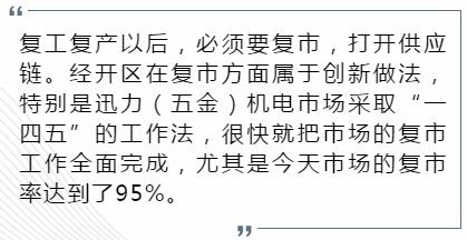 为确保疫情防控期间迅力五金机电市场有序复市,区市场监管分局实行一个市场、一名责任局领导、一组人员、一套防控方案、一抓到底的工作模式。严把复市开业操作流程,做到对复市从业人员疫情防控工作落实落细,确保疫情无输入,稳步推进各类市场主体复市营业。