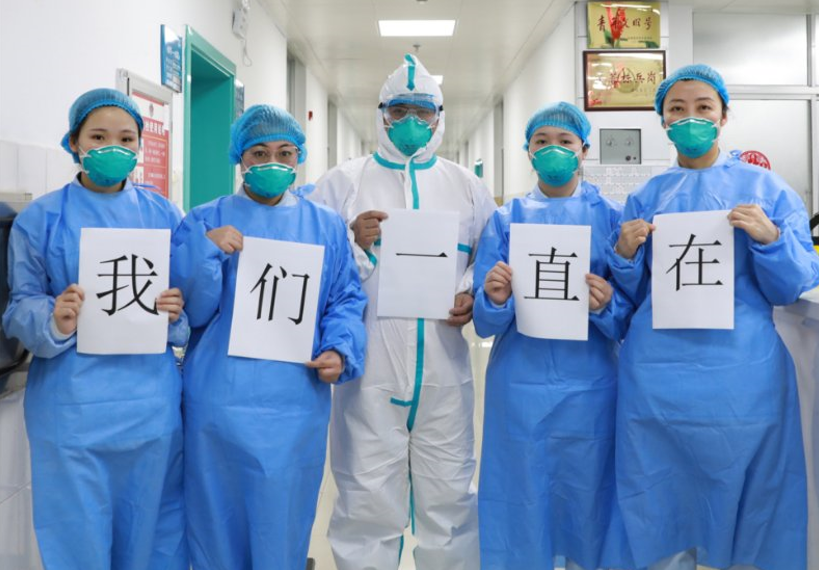 前天我已经剃了头发,成年后的第一个光头,但是剪不断的是牵挂,还有很多没来得及说的话。今天是情人节,你我皆非儿女情长之人,就让你我初心不改、做个有情怀有担当的行医人吧!还是出征时的那句话:君在战,汝心安!情人节,不能买花,也不能回家,在这儿,就用手,比个心