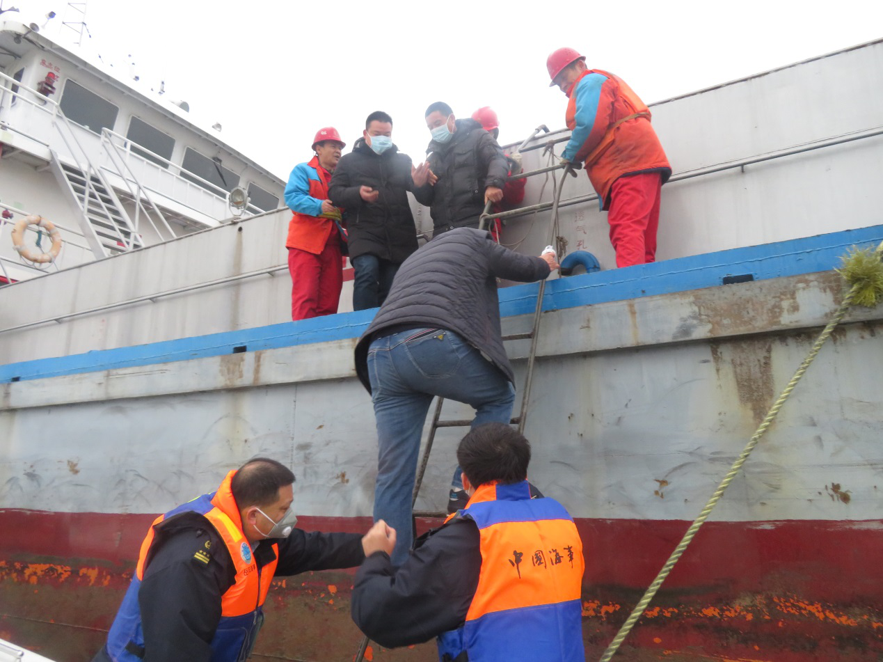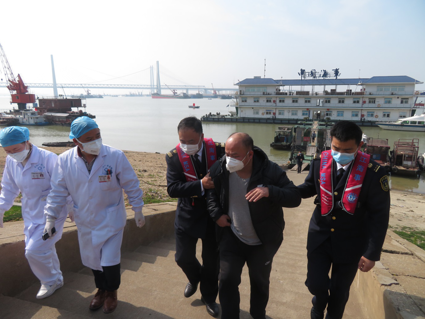 “救人是第一位的!”作为当班队长,朱梦华来不及考虑太多,立即召集队员们,叮嘱大家带好口罩,携带非接触式测温计、消毒喷雾,赶赴事发船舶。