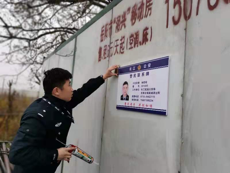 岳阳广电全媒体讯(网眼看岳阳 记者/欧阳琳 通讯员 何永旺、刘俊)为进一步增强警民联系,确保辖区治安大局稳定,推进长江干线岳阳区段水域突出治安问题综合整治工作,12月25日,长江航运公安局岳阳分局陆城派出所深入辖区粘贴和宣传“警民联系牌”,获得辖区单位和群众一致好评。