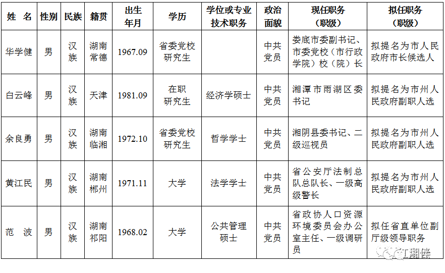 为了加强对干部选拔工作的监督,提高识别和任用干部的准确程度,现对省委常委会会议研究决定的下列拟任人选(候选人人选、提名人选)进行任前公示: