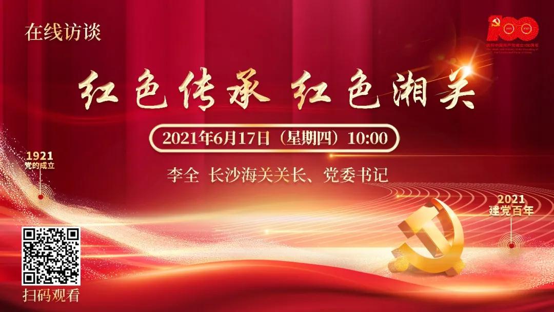 海关总署将于6月17日(星期四)上午10:00举办题为“红色传承 红色湘关”的在线访谈活动,长沙海关关长、党委书记李全将作为嘉宾参与访谈并在线回答网友提问。