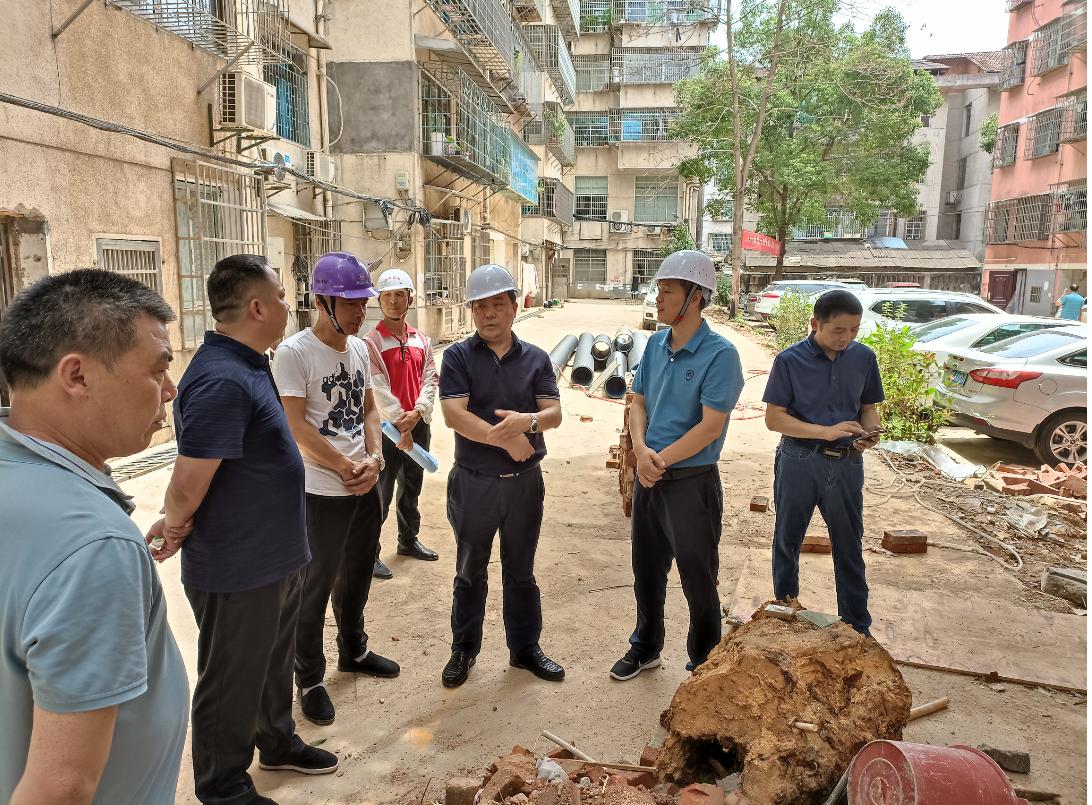 6月14日下午,区委常委罗海实地督导东井岭、吕仙亭、观音阁老旧小区改造片区涉及燃气管道及设施设备迁移、强弱电入地施工等改造项目存在的安全隐患。