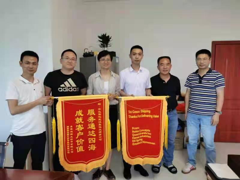 “现在这个行情我们出口太难做了。你们公司的服务响应太迅速了,不愧是国企担当!”近期,中远海运集运下属武汉集运湖南公司走访湖南某无纺布工厂时,收到客户赠送的中英文锦旗和感谢信,客户对中远海运给予中小企业的支持深表感谢。“有你们的支持我们更有信心!”湖南某平衡车工厂表示经过这次全球性“危机”后会更加信任中远海运,后续将始终保持与中远海运紧密合作。
