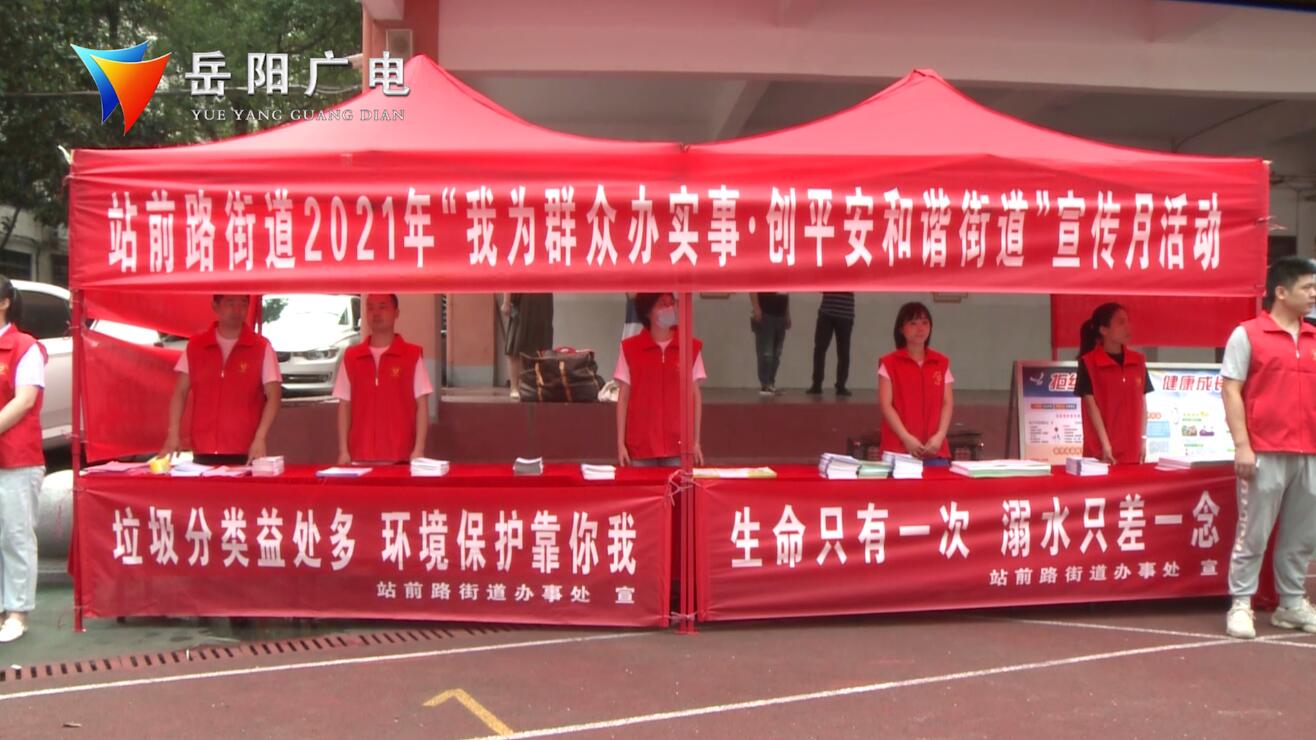 岳阳广电全媒体讯(记者 欧阳琳)为深入推进“平安社区”建设,不断提高广大居民对平安建设工作的知晓率、参与率,在辖区内营造“共建,共治,共享”的良好局面,创造和谐稳定的社会环境。6月29日,岳阳楼区站前路街道结合党史学习教育,开展为期一个月的“我为群众办实事•创平安和谐街道”为主题的实践活动暨平安建设宣传月活动,为建党100周年献礼。