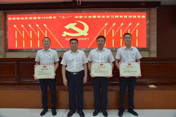 岳阳广电全媒体讯(通讯员 雷珊珊)6月30日上午,湖南移动岳阳分公司举行庆祝建党100周年先进表彰大会暨党史学习教育宣讲报告会,公司领导、各支部书记、先进代表及新党员共计90人参会。