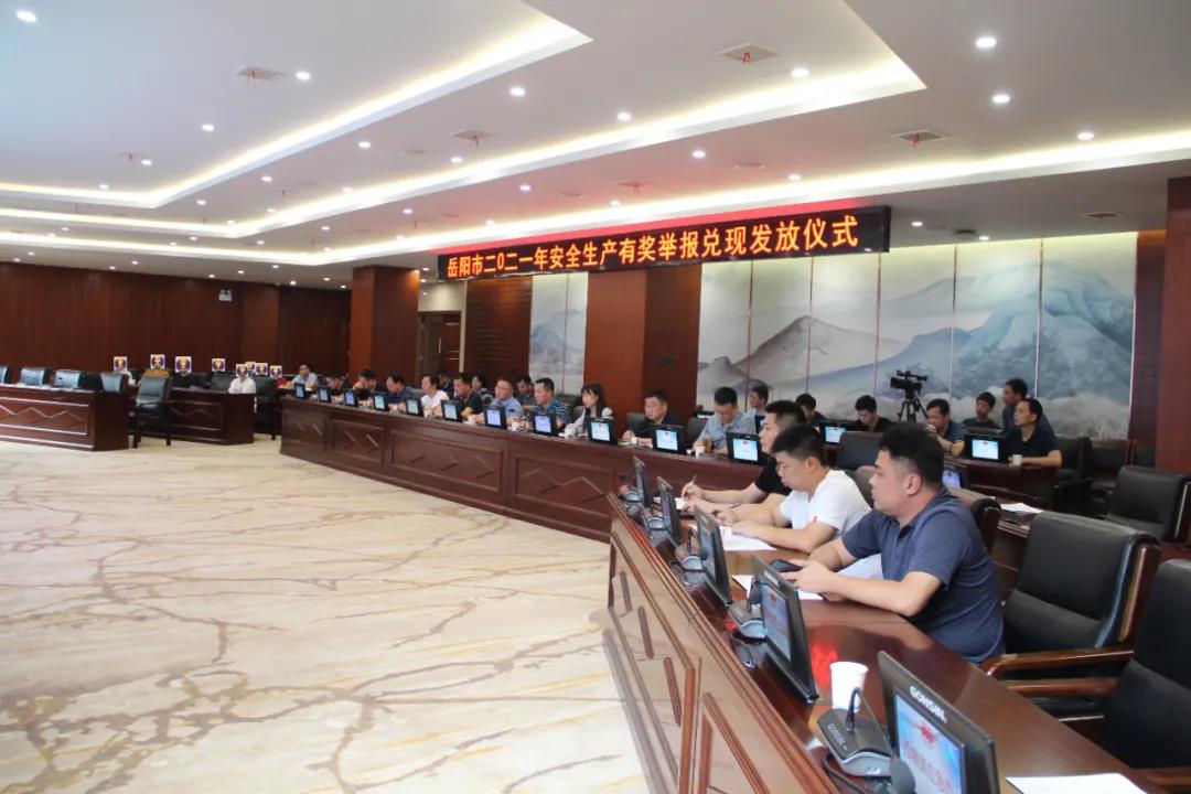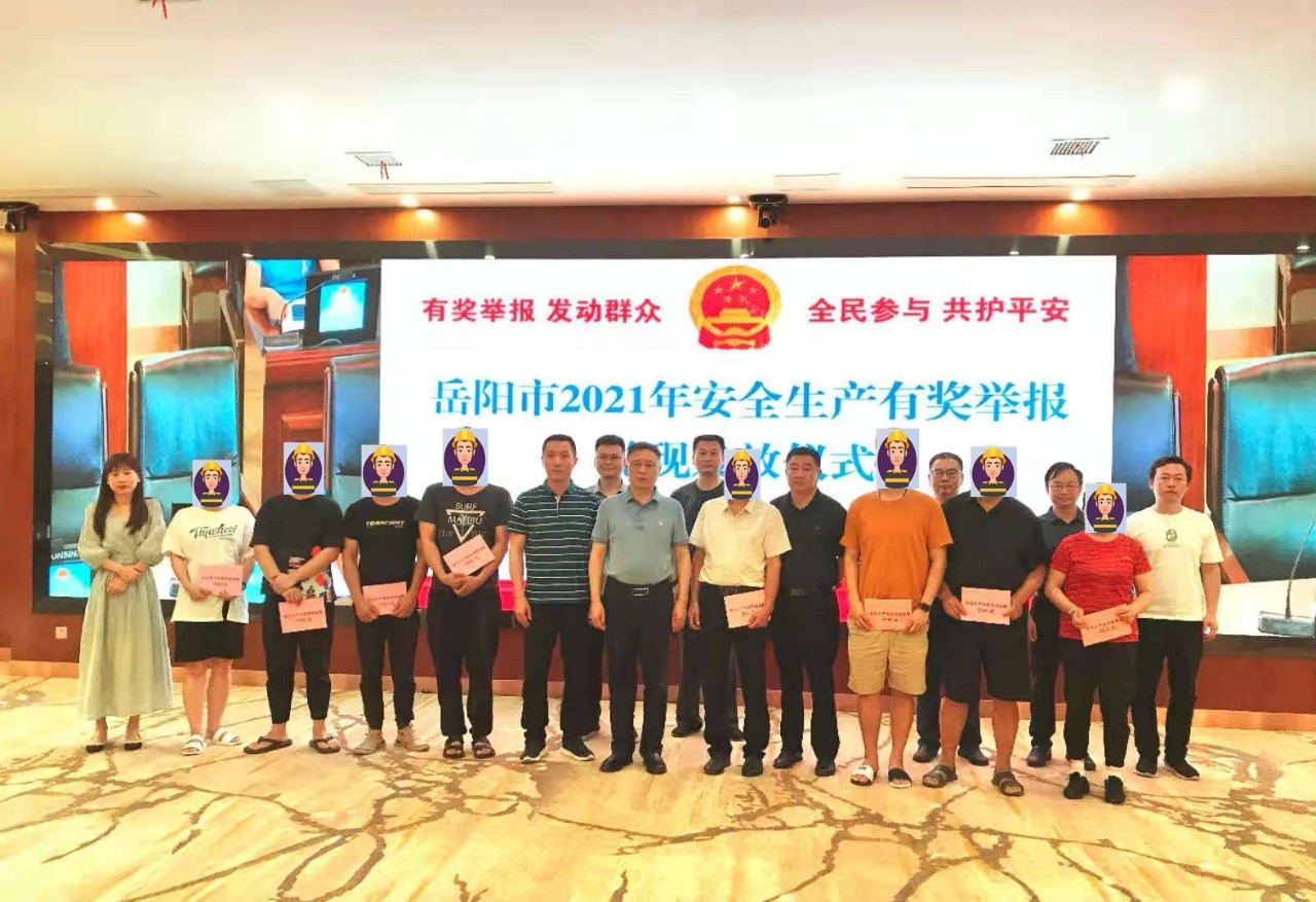 6月30日下午,市安委办举行岳阳市2021年度安全生产有奖举报兑现发放仪式,8名举报安全生产隐患和非法违法行为的市民获得现金奖励。市安委办主任、市应急管理局党委书记、局长林军华,市应急管理局分管负责人和相关监管科室负责人,市市场监管局和市商务粮食局相关科室负责人,岳阳楼区、岳阳经开区、南湖新区和城陵矶新港区应急管理局局长以及被举报隐患所在地乡镇(街道)应急办主任参加仪式活动。