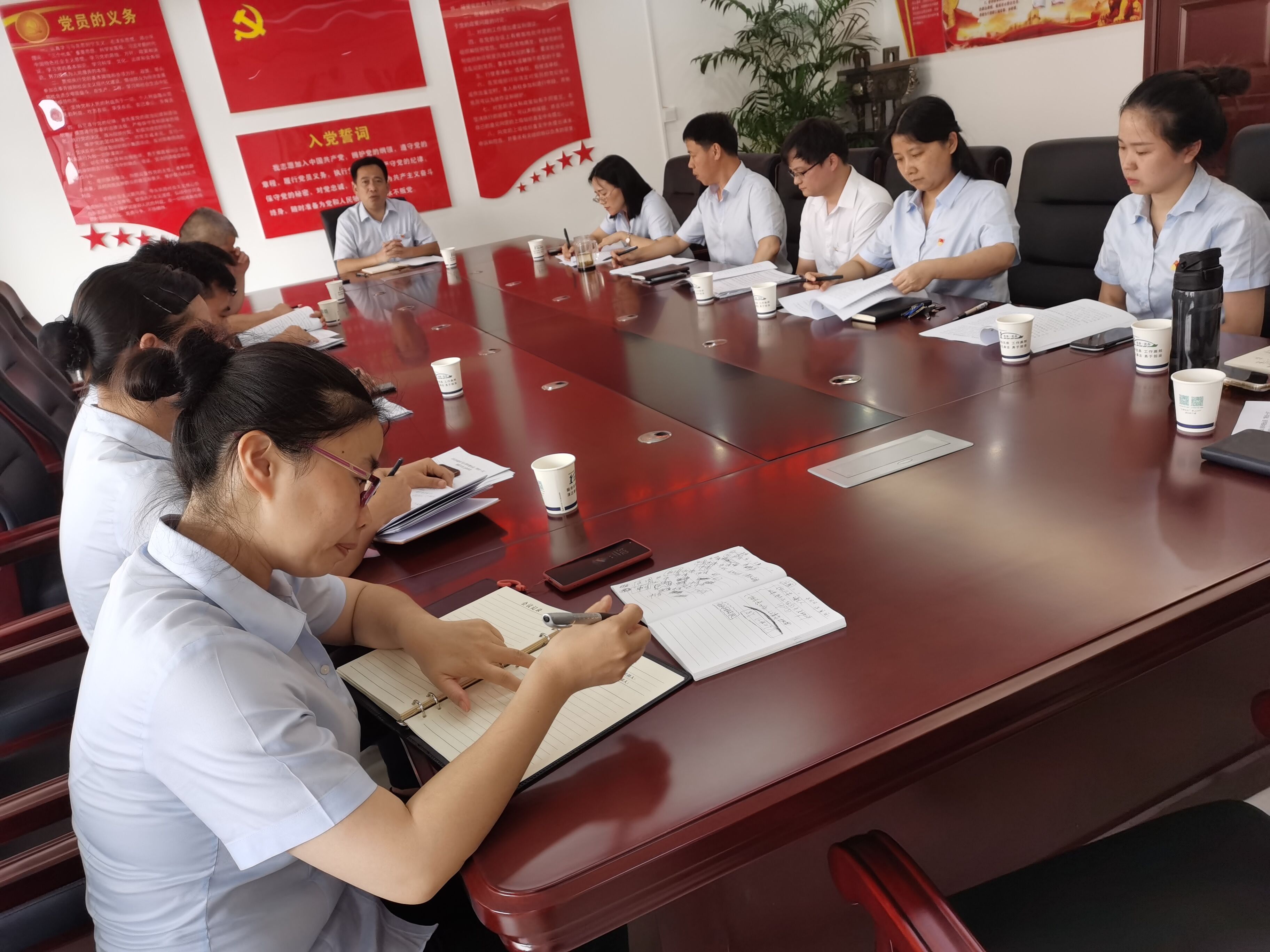 岳阳广电全媒体讯(通讯员李曙红)“通过党史教育,让我仿佛置身于硝烟弥漫的战争年代,是无数革命先烈抛头颅洒热血,才换来了我们今天来之不易的幸福生活……”7月2日中午,岳阳县政务服务中心干部职工开展的“党史百年·天天读”读书分享活动,年青干部张谦正在对照党史学习笔记为同事们谈体会、话初心。虽然室外天气炎热、课堂分享的场所就在会议室,但是该中心的十多名干部仍然听得津津有味。