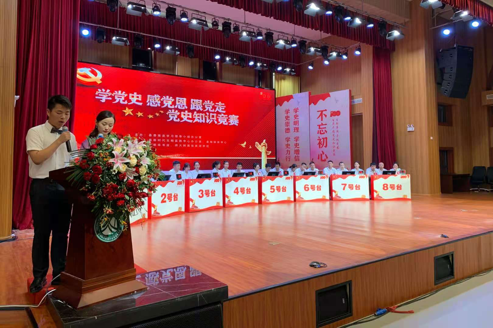 此次大赛历经2个多月的初赛、复赛,最终共有三封寺镇、治河渡镇、插旗镇、禹山镇、政法系统、政府办系统、财政税务系统、教体系统8支代表队晋级决赛。决赛分为必答题、挑战题、抢答题和闯关题四个环节,题型包括单选、多选、填空、判断和简答题,内容涉及中国共产党发展史、新中国史、改革开放史、社会主义发展史等知识。