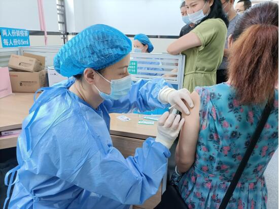 岳阳广电全媒体讯(通讯员 曾兰花)“请您放松,很快就好,接种后留观30分钟。回家后饮食要清淡,注意休息。”日前,岳阳楼区站前路街道社区卫生服务中心,医护人员何林提醒着来接种新冠病毒疫苗的居民。她告诉记者,每天7时30分,他们开始为居民接种新冠疫苗,晚上不“打烊”,单日最多接种疫苗人数达800多人,争分夺秒开展接种,为居民接种疫苗提供便利。