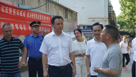 岳阳广电全媒体讯(岳阳楼区融媒体中心 宋俍 沈纲)7月15日下午,岳阳楼区区委副书记、区长白再兴实地督办菜市场提质改造和马路市场整治工作,相关单位负责人参加。