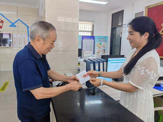 岳阳广电全媒体讯(岳阳楼区融媒体中心 莫流洁 李磊)近日,岳阳楼区王家河街道东升社区69岁的周胜军老人来到社区一门式综合服务窗口申请办理《老年人优待证》。不同于以往需要一周时间才能拿到证件,这次周胜军不到3分钟就拿到了“红本本”,这也是岳阳楼区第一本由社区发出的《老年人优待证》。