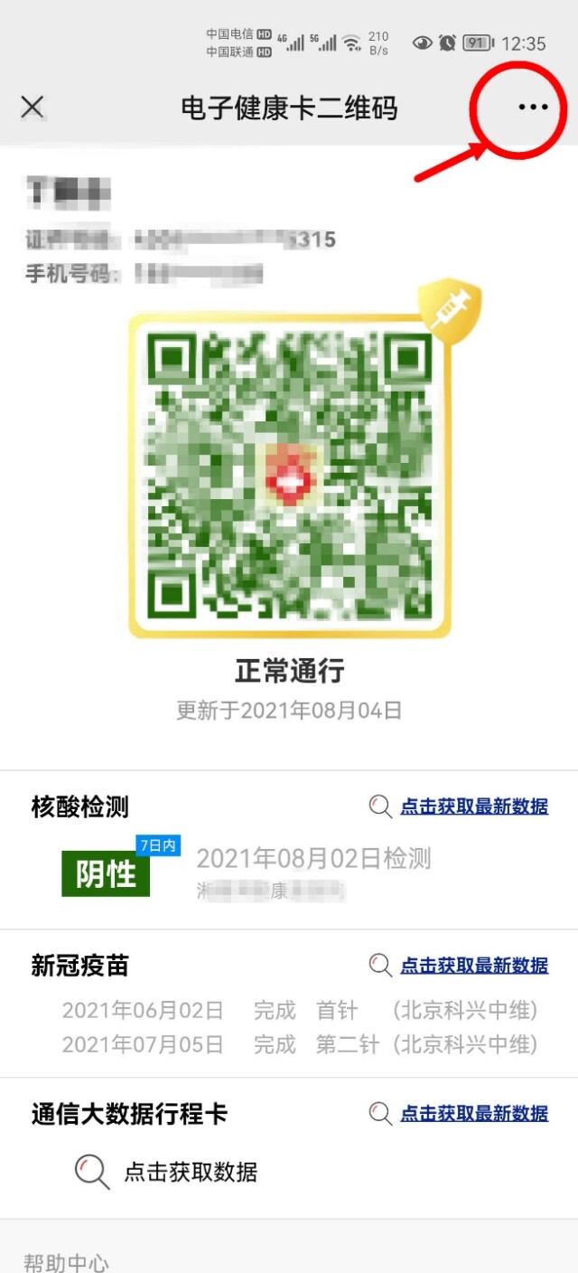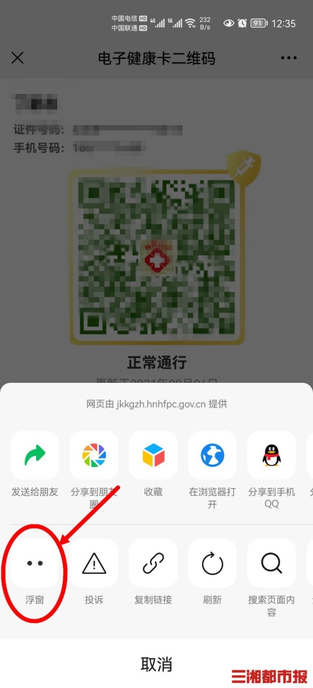 当需要用到健康码时,只需要点击该按键,就可以快速弹出健康码。