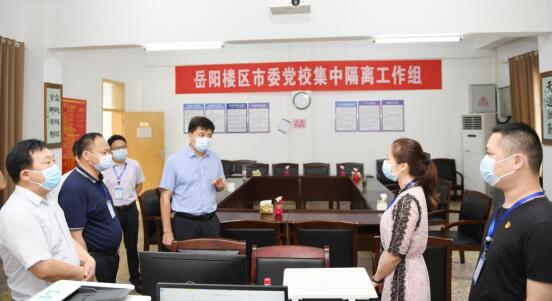 岳阳广电全媒体讯(岳阳楼区融媒体中心 宋俍 戚壮波 袁梓杰)8月5日,岳阳楼区区委书记曾平原前往区新冠肺炎疫情防控指挥部、市委党校集中隔离点,以及位于城陵矶街道、站前路街道、五里牌街道等地的隔离宾馆,实地检查疫情防控工作,并看望慰问坚守在防控一线工作人员,就如何加强疫情防控工作提出指导性意见。区领导胡晓明、黎建欣、李尧瑶、唐露尧等参加。