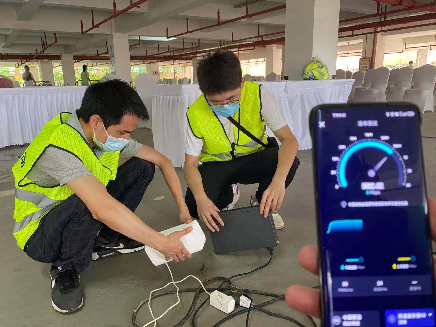 面对新一波疫情的突袭,接种疫苗人数不断激增,接种方舱陆续开放。为了保障接种点的通信畅通,湘潭九华街道办发出求助信息,湖南移动湘潭分公司第一时间积极响应,前往现场实地勘测、灵活部署。在一天内开通5G专线并进行5G网络覆盖测试和调试调优,确保现场6个接种台的接种数据高带宽和低时延对接湖南省接种平台。该方舱于8月4日投入使用,每天接种人次可达5000以上。