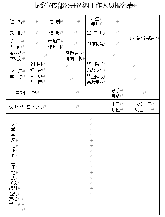 附件:市委宣传部公开选调工作人员报名表