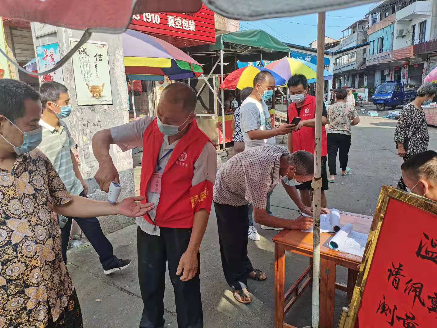 严守入口、筑牢防线。志愿者们积极落实上级疫情防控要求,在镇卫生院、村卫生室、敬老院、农贸市场、机关、村(社区)等公共场所出入口设置排查点,进入公共场所的人员需要佩戴口罩、登记信息、查看“两码一记录”、经体温测量正常方可进入。鲇鱼须镇对进入公共场所的人员进行登记检查,加强管理,严守“第一关口”。
