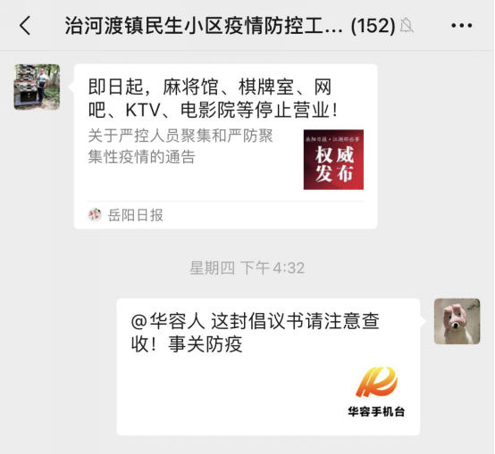聚力宣传引导。一方面利用“村村响”广播、流动宣传车、悬挂横幅等传统方式,宣传疫情防控相关信息;另一方面,镇、村干部每天在微信网格群内推送2条以上风险地区动态及防疫知识要求,及时把权威信息、政策措施、科学防控知识有效传达到千家万户,通过开展立体化、全方位、多层次的舆论宣传引导,确保疫情防控宣传到位,营造人人知晓、人人支持、人人参与的浓厚氛围。