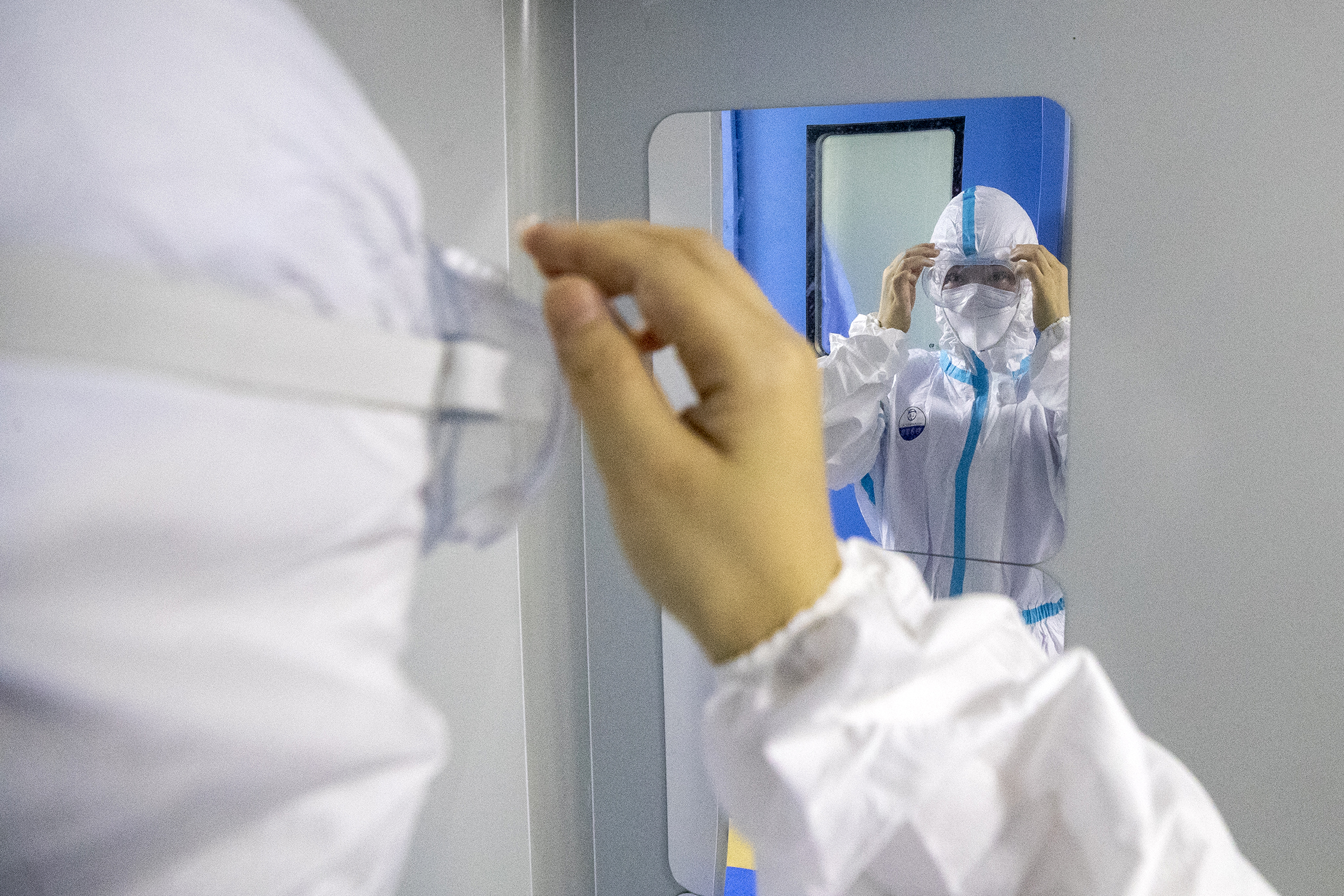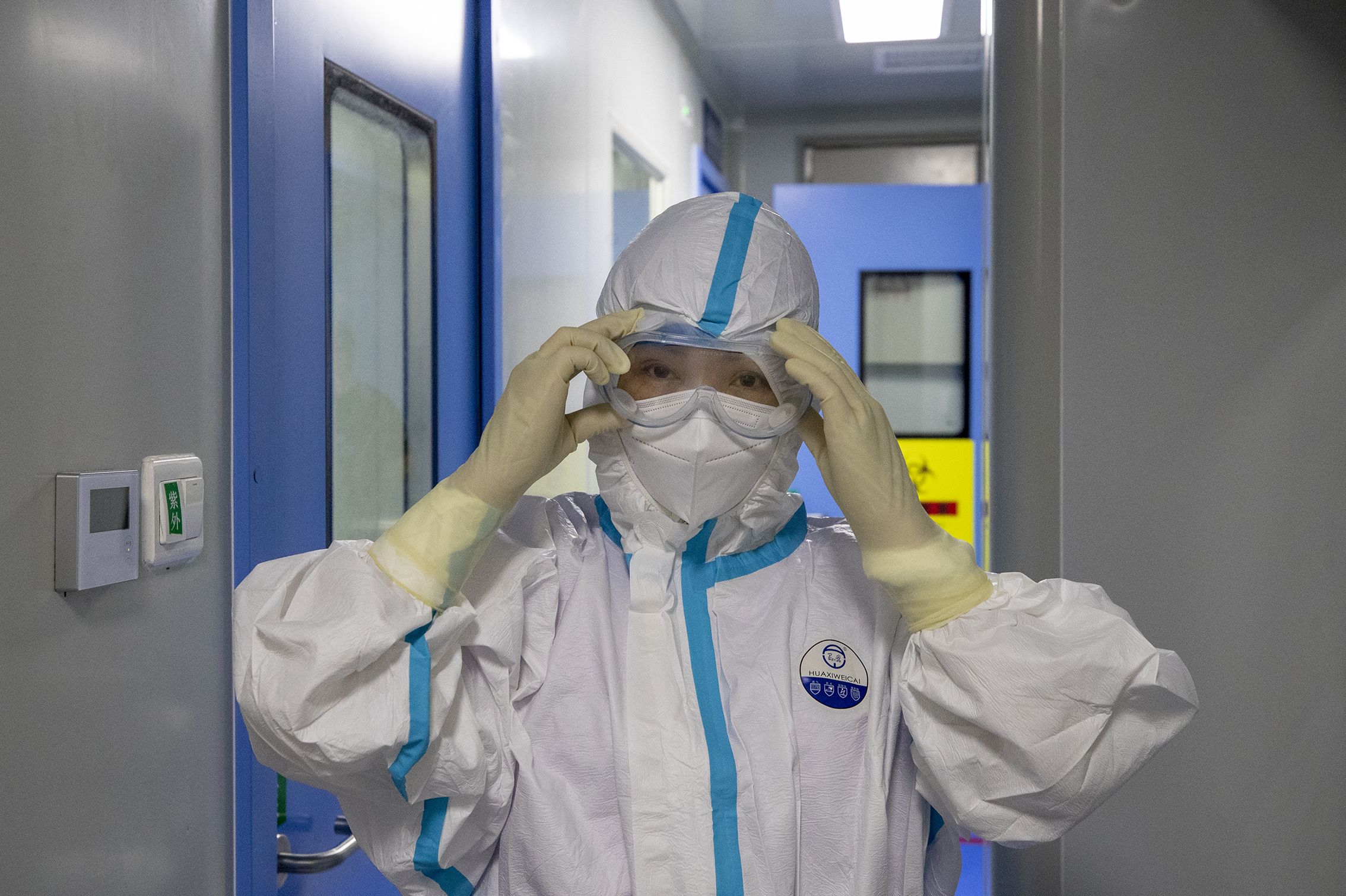 新冠肺炎疫情防控工作开展以来,屈原管理区全区各核酸检测点的样本全部要送往这里进行检测,医院核酸检测中心是直接与核酸检测标本直接接触,属于三级防控标准,是最容易被感染的高风险工作区,而在标本制备区是整个核酸检测工作中最危险的一步。“在这一区域,核酸检测员直接与标本面对面,必须严格穿戴三级防护装备,也就是N95口罩、帽子、护目镜、二层乳胶手套、防护服、隔离衣、一次性鞋套等,一个也不能少。”黄芳介绍。为了确保病毒不“跑”出实验室,样本制备区是低于标准大气压的负压状态。三级防护已经让人全身憋闷,而负压环境更加重了核酸检测员的压力,容易出现呼吸不畅、头痛等缺氧症状。而且在检测的四个小时里,期间不能喝水上厕所,在这炎热的夏天,虽然有空调,但是全身还是被汗水湿透。说起近段时期工作,黄芳腼腆的说起 “工作辛苦点没关系,只希望疫情早日控制,我们都恢复正常生产生活秩序。”