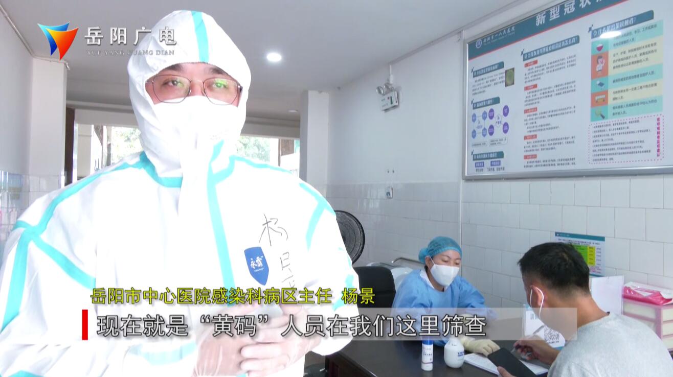 岳阳市中心医院感染科病区主任 杨景:现在就是“黄码”人员在我们这里筛查,可能你没有症状,但是你的健康码是黄码,黄码的人群一定要等核酸检测结果为阴性以后,我们才能让他离开这里,再交由社区管控起来。