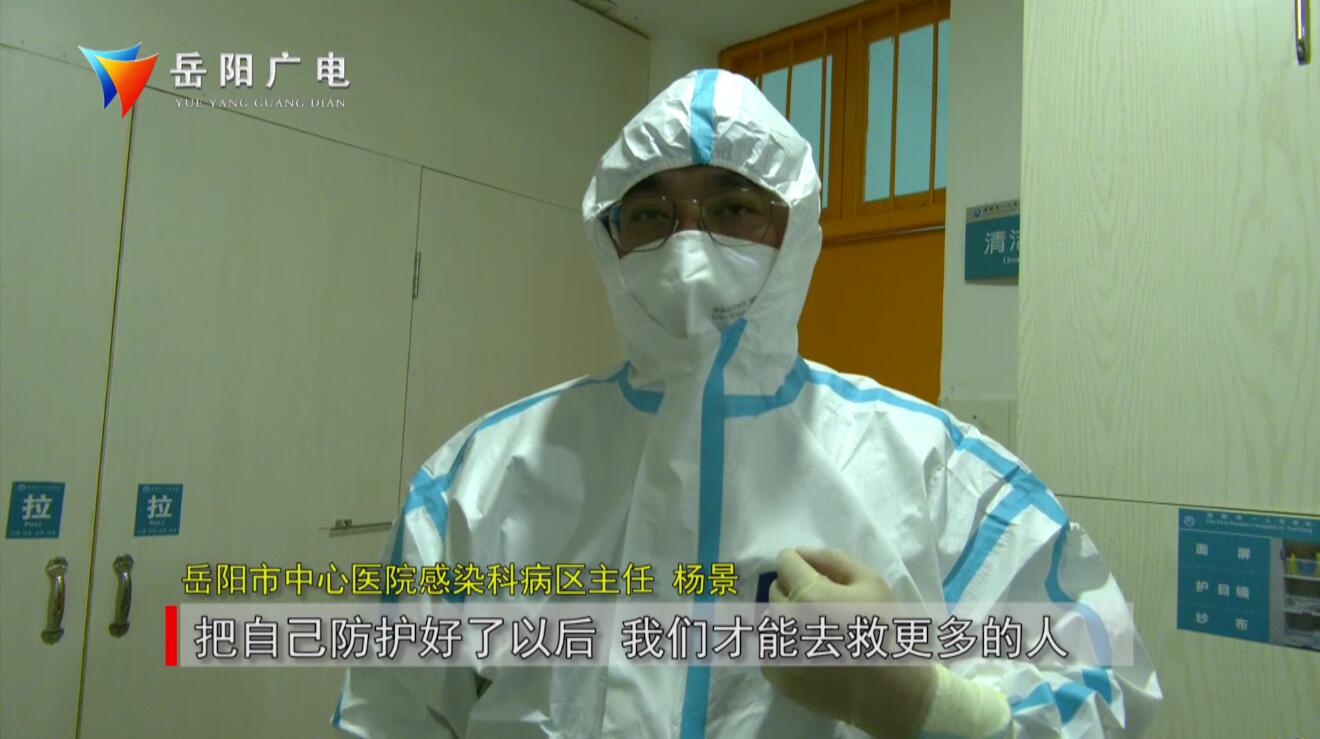 岳阳市中心医院感染科病区主任 杨景:穿隔离衣啊,穿防护着装,要求特别严格,这也是对我们最好的防护,把自己防护好了以后,我们才能去救更多的人。