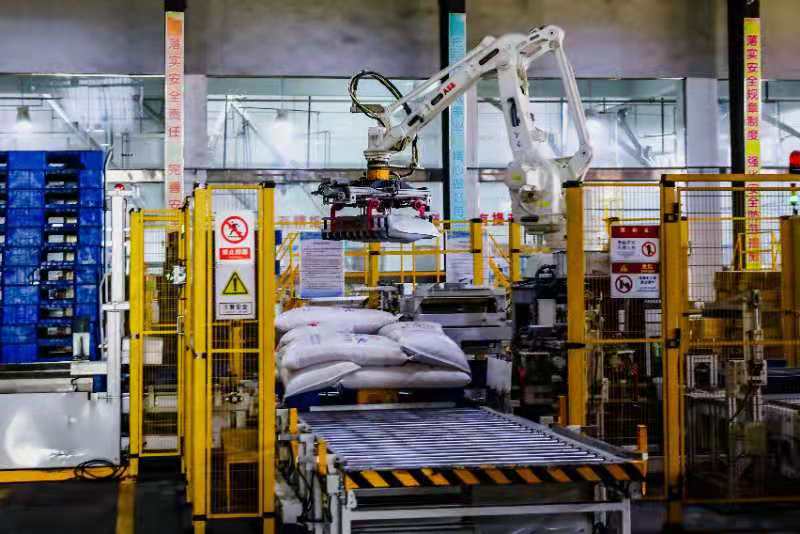 正是早稻米加工生产的忙碌时节,原以为岳阳最大的大米生产企业——中粮米业(岳阳)有限公司(简称岳阳米业)的大米生产车间一定会有无数员工正在挥汗如雨装卸稻谷、大米的场景。8月9日,记者见到的却是另外一番景象:这是湖南省最大的全自动化大米生产无尘车间,隔着玻璃,记者看到整个车间只有2名工作人员坐在生产指挥室,眼睛盯着电脑;从稻谷入斗到大米包装,再到大米装车,所有生产流程全部实现了智能化,那些搬运的体力活早已由智能机器人顶替。