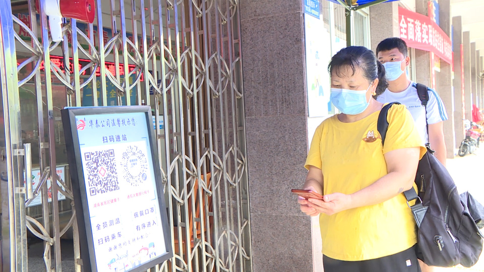 在华容县中心汽车站进站口,记者看到,来往旅客佩戴口罩、扫码出行,大家自觉在“一米线”排队等候。候车室外,“全面落实联防联控措施,构筑群防群治严密防线”的红色标语格外醒目,“大嗓门”广播循环播放着旅客进站的注意事项,电子显示屏上滚动播放着疫情防控的温馨提示。