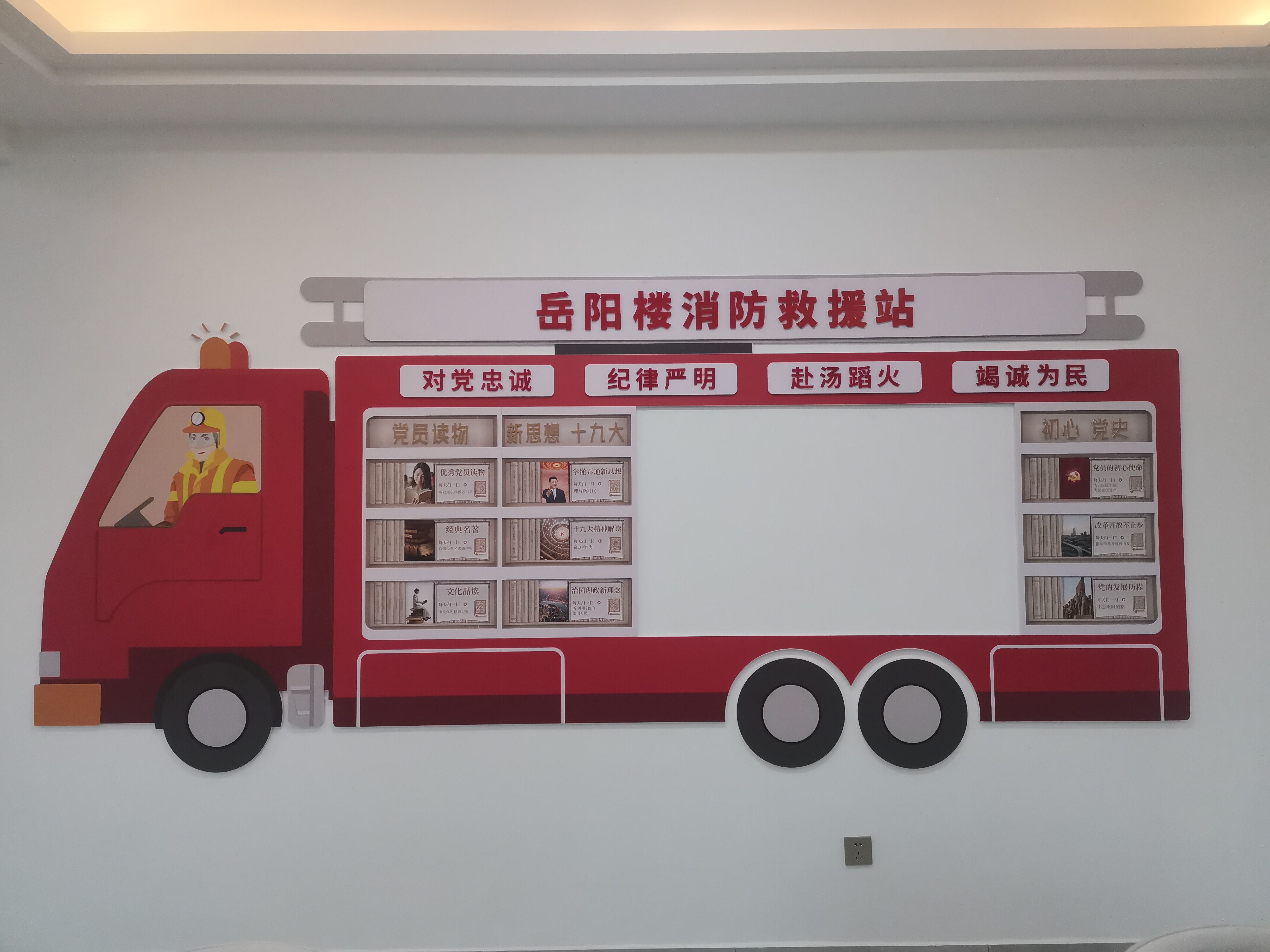 大队有声图书馆分布在二楼的学习室及三楼的消防员之家,以党员的初心使命、改革开放不让步、党的发展历程、优秀党员读物、经典名著、文化品读、学懂弄懂新思想、十九大精神解读、治国理政新理念等知识为主要内容。每个版块按照类别有序排列,每个二维码对应不同的专辑内容,共有16个图书音频和语音节目,采用优选线上音频内容,让党建知识、理论知识的学习变得日常化、常态化,打破时间、空间限制,让党建知识随听随学,实现“人在哪里,宣传阵地就在哪里”的新型模式,切实解决了传统书籍不易携带、数量有限、更新维护成本过高的难题,打破了以往党建知识学习的传统“读本”方式。从过去的“定时学”“集中学”,向“随时学”“随地学”“自主学”的转化,为指战员提供了智能、便捷、个性化的文化服务。这种“有声有色”的阅读方式,是大队的一次重要创新尝试,也是提升消防指战员业余生活的一项重要举措。