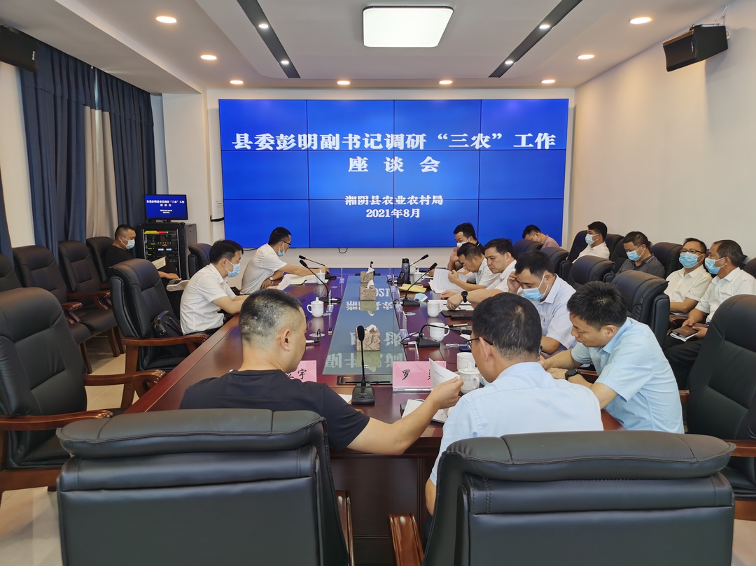 岳阳广电全媒体讯(湘阴县融媒体中心记者 梁墨源)8月17日,湘阴县委副书记、统战部长、县高新区党工委第一书记彭明主持召开“三农”工作座谈会,就该县“推进乡村振兴,加快农业农村现代化,建设大美湖区优质农产品基地”进行调研。