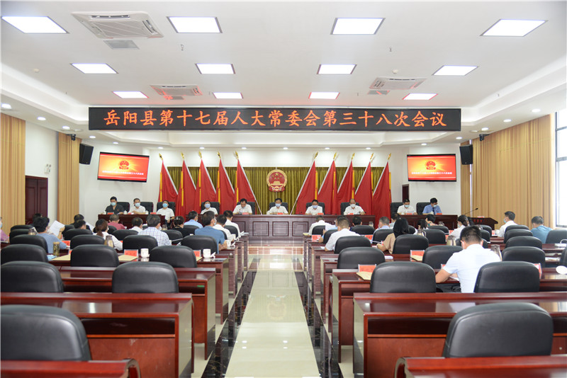 岳阳县融媒体中心8月19日讯(记者 袁颖 钟斯洋)8月19日,县十七届人大常委会召开第38次会议通过有关人事任免。县人大常委会主任汤小娥,副主任胡海平、易治国、陈晓军、吴承棉出席会议。代县长吴光文,副县长提名人选童勋海,县监察委员会主任提名人选姚书茂,县人民法院院长提名人选古田,县人民检察院检察长提名人选闵孚君列席会议。