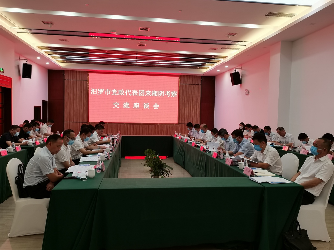 汨罗市党政代表团先后前往高新区可孚医疗产业园、樟树镇柳庄、天鹅山大学科创城和洋沙湖湿地公园等地参观考察。大家边听边看边了解,由衷感叹湘阴风景之大美、新区建设之大气,众多成效给他们留下深刻印象。