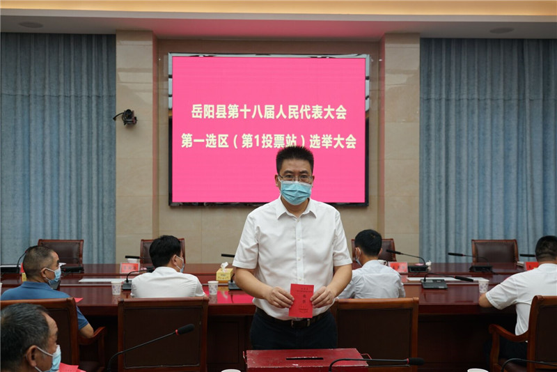 岳阳县融媒体中心8月24日讯(记者 周星亮 熊佳)8月24日,县第十八届人大代表选举第一选区(第1投票站)举行县人大代表选举大会。县委书记肖湘晖,县委副书记、政法委书记姜其胜,县委常委、县委办主任王靖以普通选民身份参加投票。