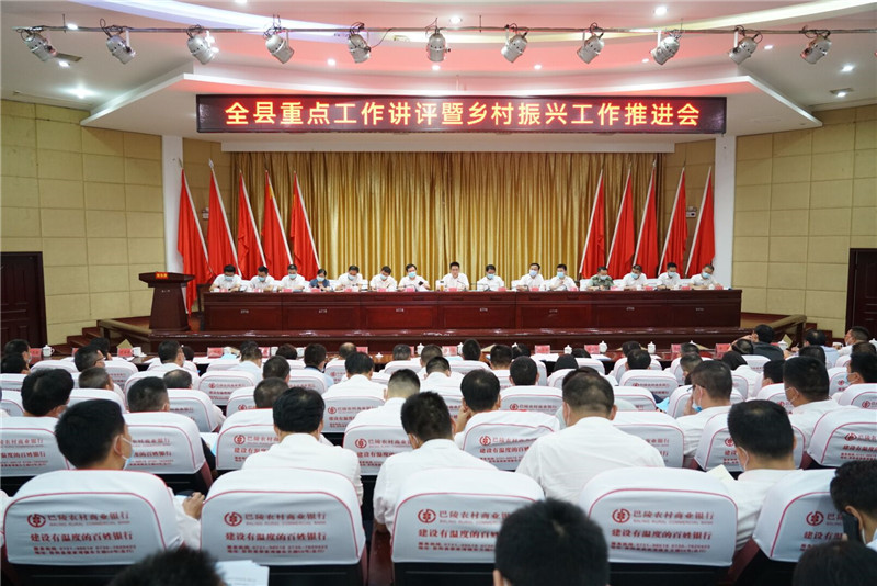 岳阳县融媒体中心8月30日讯(记者 秦淑云 熊佳)8月27日,我县召开重点工作讲评暨乡村振兴工作推进会。县委书记肖湘晖在会上强调,要紧紧围绕“四区”建设目标任务,开阔思路,精准发力,加快推进县第十三次党代会部署的各项工作,全面完成年初确定的目标任务。县“四大家”领导和处级干部,全县各乡镇(办事处)、县直及驻县单位主要负责人参加会议。