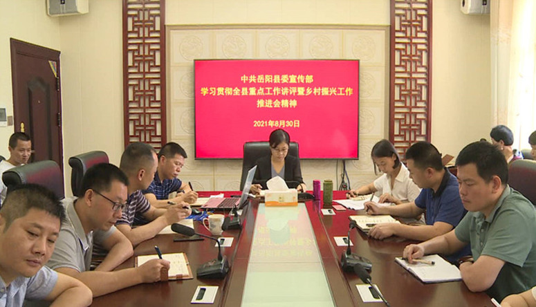 岳阳县融媒体中心8月30日讯(记者 周雨萱)8月30日,县委宣传部组织召开全体干部职工会,传达学习全县重点工作讲评暨乡村振兴工作推进会精神,县委常委、宣传部长何喜主持,部机关全体干部职工参加。